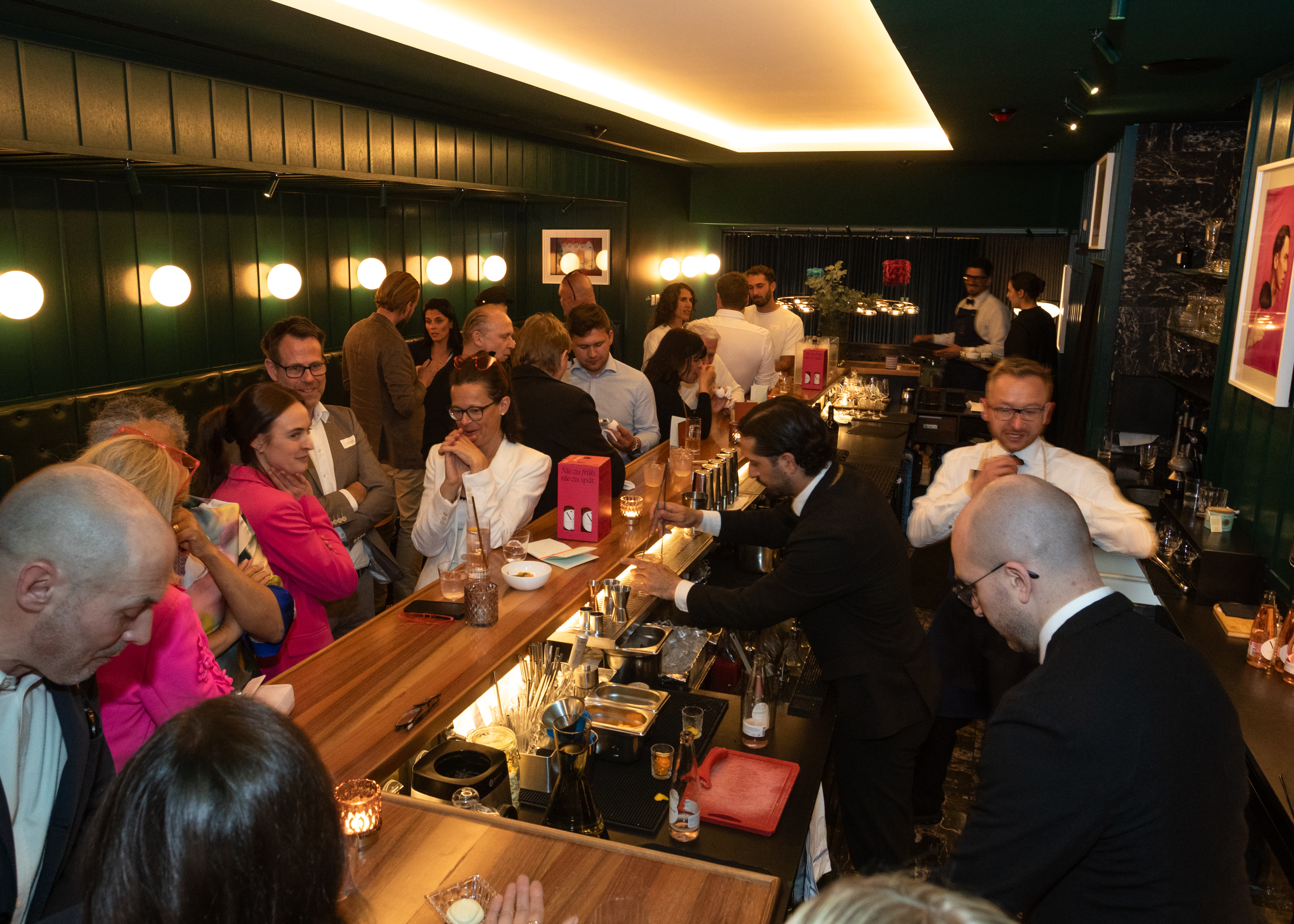 Beim exklusiven Launch-Event am 9. April 2025 in der IGNIV Bar by Andreas Caminada in Zürich präsentierte Chef de Bar Daniele Biondo drei Cocktails auf Basis von «fellini Füfvor Rosé Tonic». Die Gäste – darunter Fachjournalist:innen, Sommeliers und Genussmenschen – kürten den prickelnden fellini Füfvor Bloom zum Sieger des Abends. Das Rezept dieser er frischenden Kreation finden Sie hier.